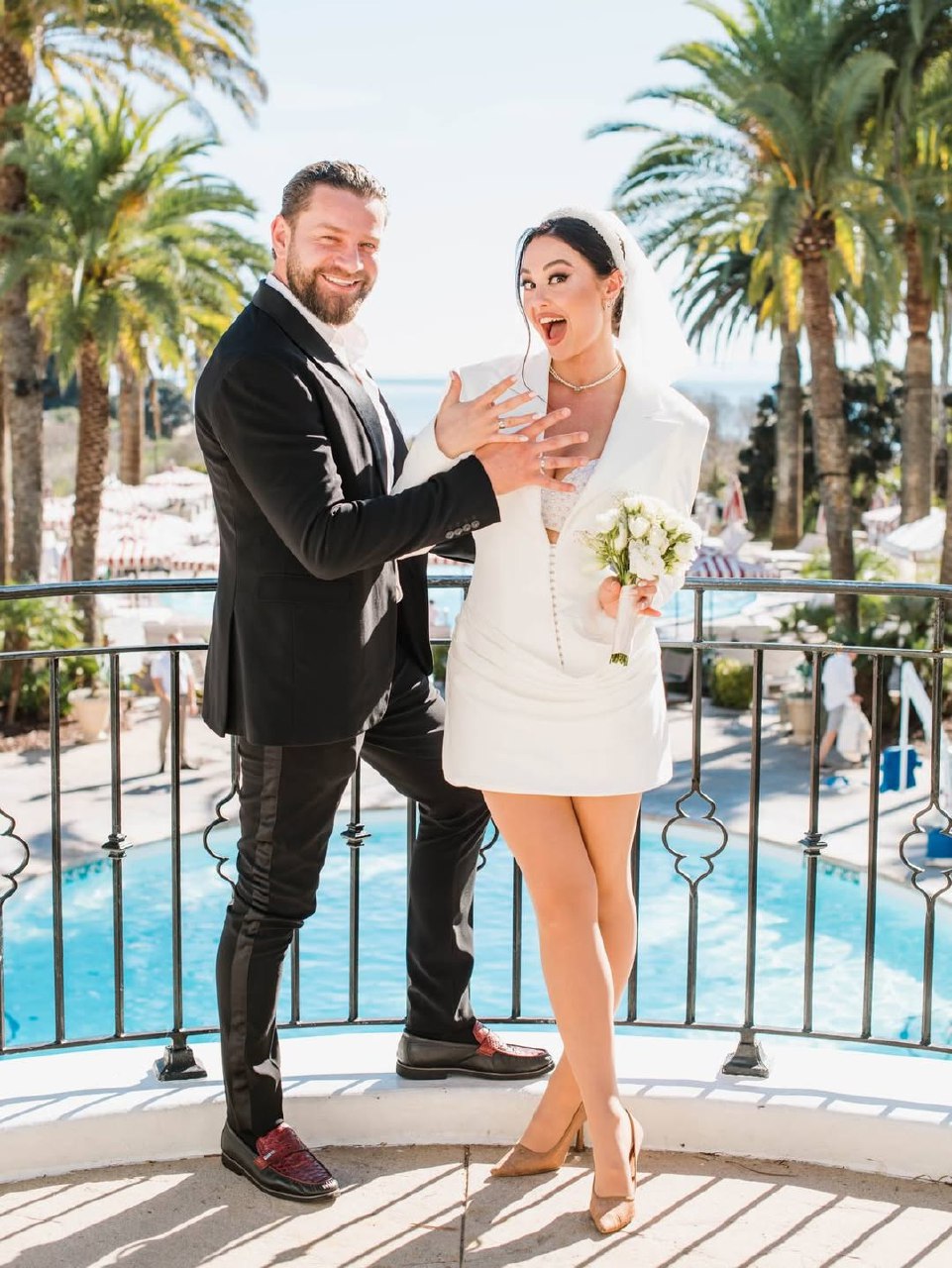 На весіллі Богдан з’явився у класичному чорному костюмі, тоді як Вероніка обрала стильний і нетиповий образ – подовжений піджак, блискучий ліф із камінцями та вишукані аксесуари. Святкування продовжилося в одному з ресторанів Лос-Анджелеса.